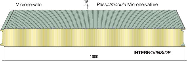 Realizzato inserendo uno strato coibente esclusivo, costituito da listelli di lana minerale biosolubile sfalsati in senso longitudinale le cui fibre si dispongono a 90° rispetto al piano dei due supporti metallici. Disponibile, su richiesta, con densità maggiori o minori. Coefficiente di conducibilità termica fino a l: 0,040 W/mK.