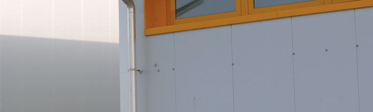 Pannelli metallici precoibentati con isolamento in fibra minerale per pareti (disponibili anche nella versione con supporto interno forato).
