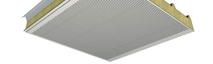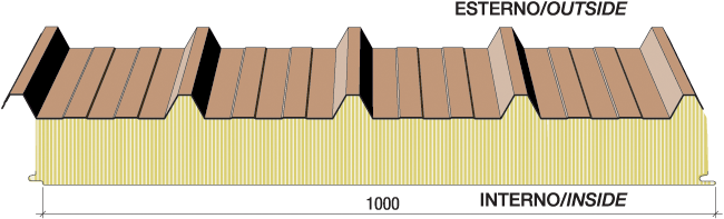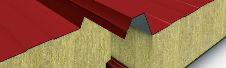 Pannelli metallici precoibentati con isolamento in fibra minerale per copertura (disponibili anche nella versione con supporto interno forato).